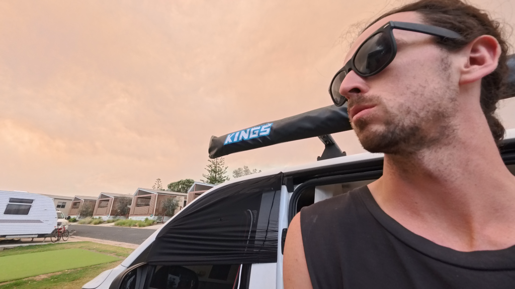 Despite the solar being fixed, our luck didn’t turn around. We arrived in Bermagui, one of the most lovely beach towns with superb beaches, hikes, and a rock pool surrounded by seals. With everything Bermagui had to offer, we thought our time would be great, but we did not account for the wind. Our campsite was on the top of the bluff so the wind came through at a tremendous rate leaving us unable to set up any camping equipment. The wind was also bringing the smoke from recent fires occurring in Victoria, leaving a terrible amount of smoke in the air.